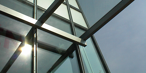 Die Stahlunterkonstruktion besteht aus Rahmen, die in Gebäudelängsrichtung mit Stahlträgern verbunden sind. Die Aussteifung in Längsrichtung erfolgt fassadenseitig durch die Fußeinspannung der Rahmenstiel. Hier wird das Auflager zusätzlich torsionssteif ausgebildet, was bei den geneigten Rahmenstielen zu einer erheblichen Verringerung der Verformung in Längsrichtung führt. In Querrichtung ist das Gebäude durch die Stahlrahmen ausgesteift.