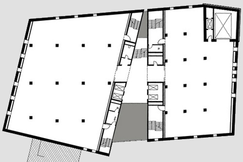 Das Gebäude wird durch das Einschneiden einer neuen Erschließungszone in zwei tragkonstruktiv eigenständige Bereiche geteilt. Die Aussteifung ist in jedem Teil durch je drei Außenwände gewährleistet.