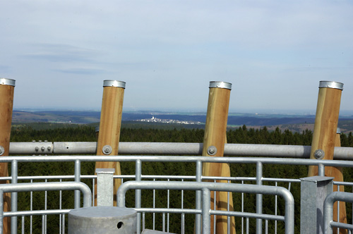 Dieser Turm am Plackweg im Arnsberger Wald zwischen Warstein und Meschede eröffnet Wanderern die Möglichkeit, auf der Aussichtplattform in 34m Höhe über die Wipfel hinweg das umliegende Panorama zu sehen. Dieses reicht über den Arnsberger Wald und das Sauerland sowie über die gesamte Hellwegregion bis weit in das Münsterland hinein.