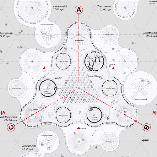 Geforderte Modularität wird nicht nur funktional oder formal verwendet, sondern auch zum tragkonstruktiven Thema des Pavillons.