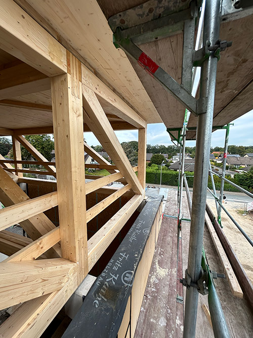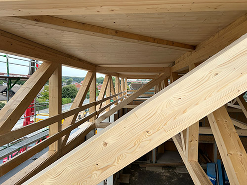 Die Konstruktion der Neubauten orientiert sich insgesamt an den Anforderungen möglichst großer Nachhaltigkeit. Der Bestand wird tragkonstruktiv ertüchtigt und ermöglicht so die energetische Sanierung u.a. mit PV-Anlagen.